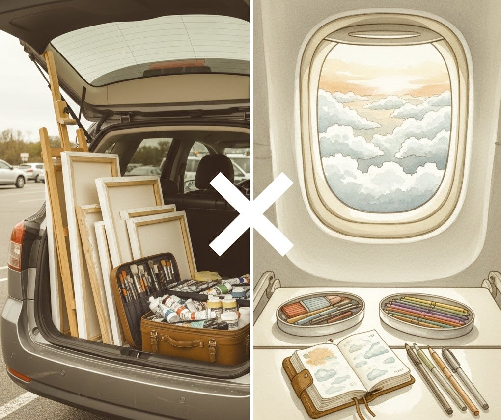 Traveling with art supplies is both an adventure and a puzzle. You want to stay creative on the road, but