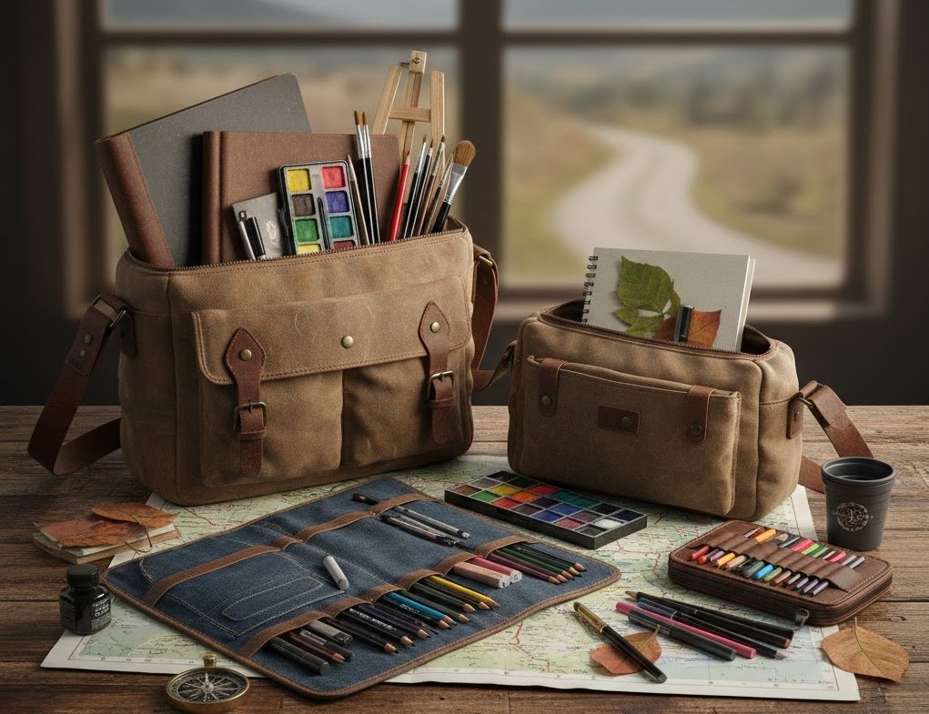 Portable sketching tools, travel art kits, minimalist setups, and packing guides designed for artists on the move.
