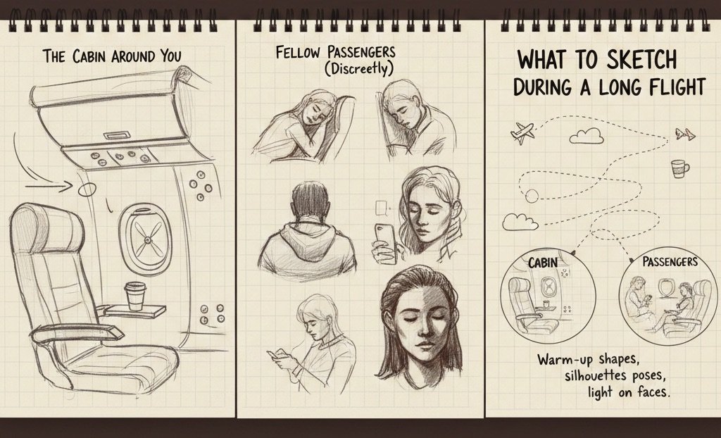 This guide explores how to stay creative in the air, what to sketch, how to work comfortably in tight spaces, and how to make the most of your time between takeoff and landing.