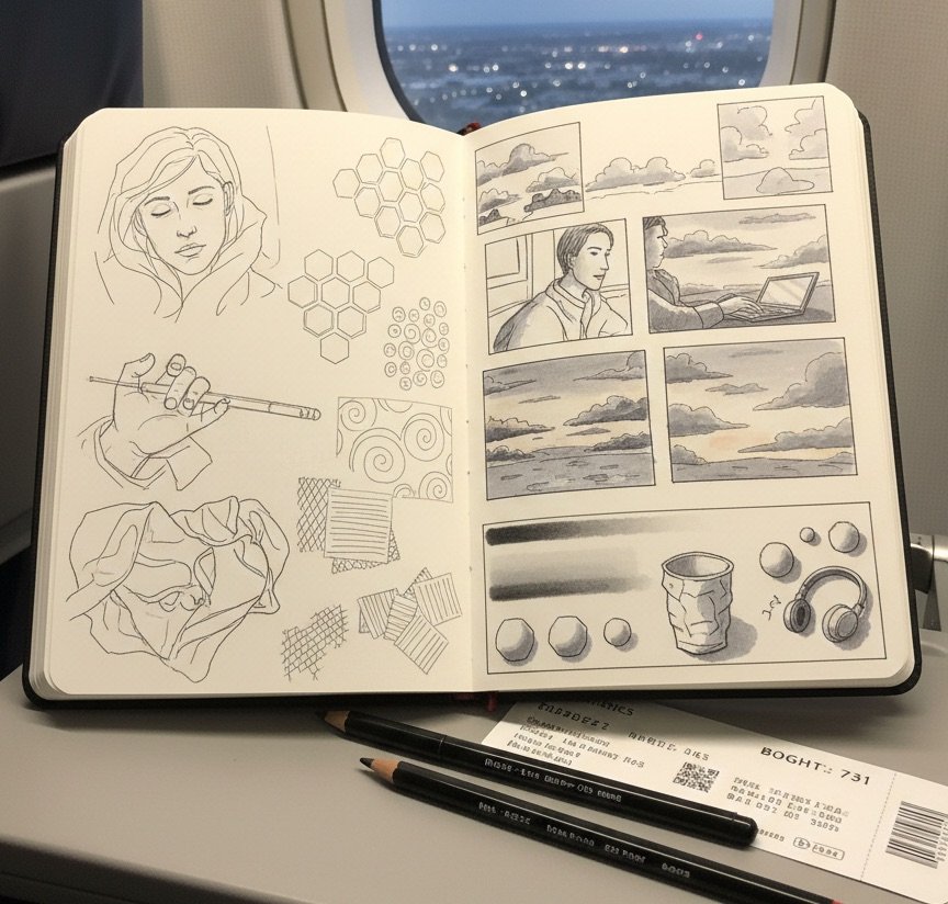 Sketching shifts your focus away from the monotony of travel. Hours pass quickly when your mind is engaged, and drawing helps reduce stress, restlessness, and screen fatigue. Many artists find that sketching on flights becomes one of their favorite parts of the journey—a quiet, personal ritual that turns travel time into creative time.